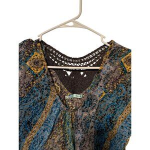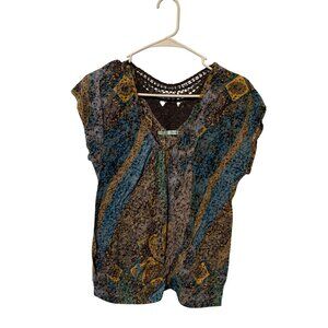 Maurices Womens Size XL Short Sleeve Cap Pullover VNeck Shirt Top Back Embellished Panel
