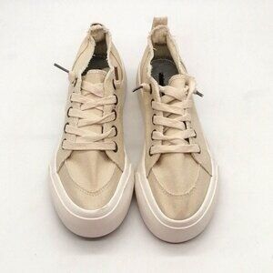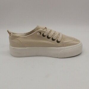 Maurices Womens Sneakers Sadie Beige Canvas Lace Up Walking Shoe Platform 8.5