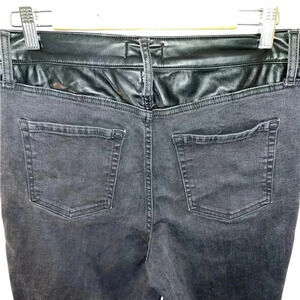 Maurices “M Jeans”, they are high-rise black jeans with black faux leather accents and plenty of stretch for comfort. The pants are in good used condition.