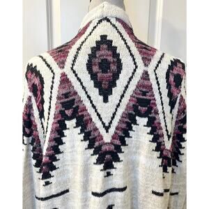 Maurices Womens Sweater Cardigan Long Sleeve Geometric Aztec Cream Pink Size 1