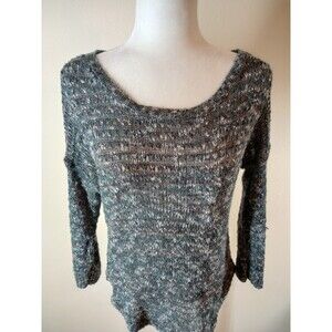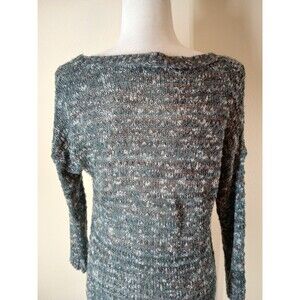 Maurices Womens Sweater Lg Green and Copper Metallic Open Knit Fabric 3/4 Sleeve