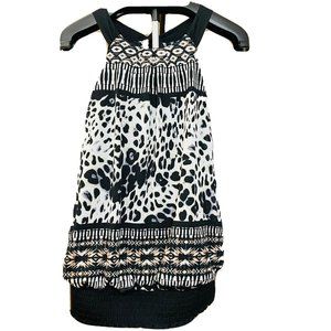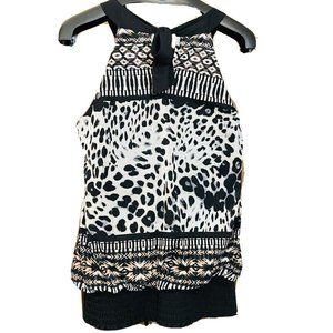 Maurices Women’s Sz large Sleeveless Blouse Animal Tribal Tank Dressy Top Tie in Back.