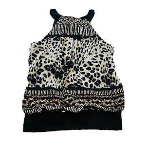 Maurices Womens Sz L Large Sleeveless Blouse Animal Tank Dressy Top Tie in Back
