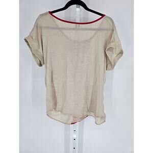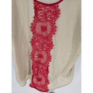 Maurices Womens Sz XL Short Sleeve Blouse Cream w/ Dark Pink Lace Overlay