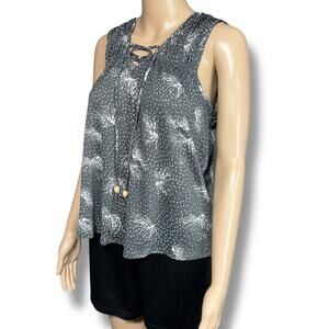 Tank Top Sleeveless Pullover Laced V-Neck Summer Gray White Maurices