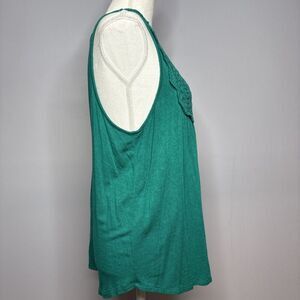 Maurices Women's Teal Green Sheer Beaded Tank Top Crochet Sequin Lace M Keyhole