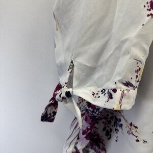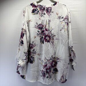 Maurices Women's Top Size Plus XXL Purple Floral Popover 3/4 Sleeves Buttons Tie