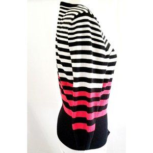 Maurices Women’s White Red Black Striped 3/4 Sleeve Cardigan Sweater Size Medium