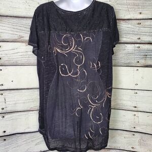 Maurices Women’s XL Black Lace Fleur-de-Lis Graphic Tee Rhinestone Studded Top
