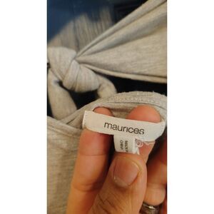 Maurice's Women's XL Gray Eyelet Striped Short Sleeve Back Knot Top