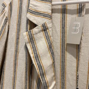 Open front. Roll tab sleeves. Stripes. Linen blend.