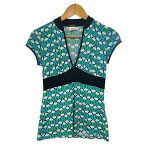 Maurices Women's Y2K Deep V Babydoll Geometric Print Cap Sleeve Top Size S