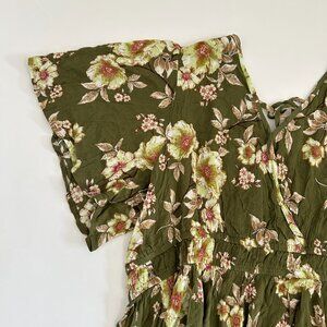 Maurices Womens size 1X Green Floral Surplice Peplum Top Blouse smocked waist