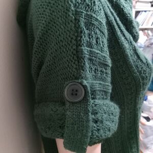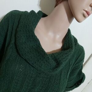 Good preowned condition, forest green, soft knit, cabled and ribbed stitch, see pics for measurements for custom fit.