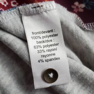 Back Material: 63% Polyester / 33% Rayon / 4% Spandex