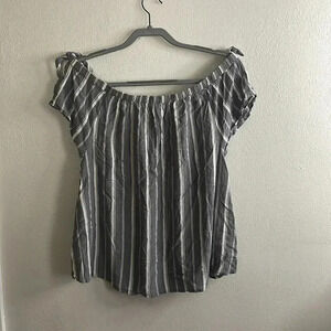 Women’s XL Maurice’s Grey and White Striped Off the Shoulder Blouse. 100% rayon