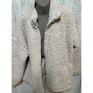 Maurices XL Teddy Bear Jacket Lined Gray Sherpa Zipped Drawstring