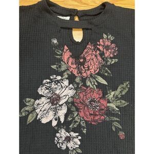 Maurice's XL - Waffle knit floral long sleeve shirt - key hole detail