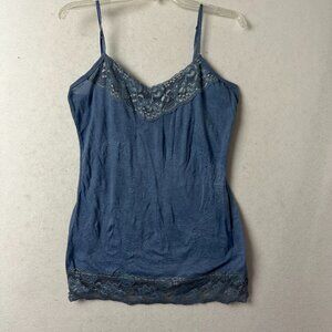 Maurices Y2K‎ Crinkle Cami Tank Top Size Large gray Long Lace Trim Fairy Grunge