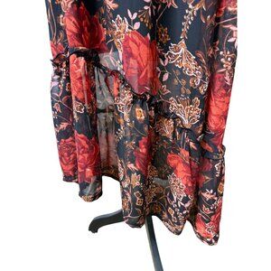 Maurices Y2K Dark Floral Romantic Fairy Whimsygoth Babydoll sheer dress Size S