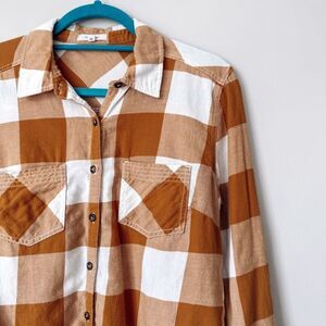 Maurices Yellow Plaid Button Down Shirt Size Medium