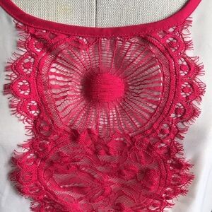 Maurices beige fucsia embroidered sleeveless crew neck top size L