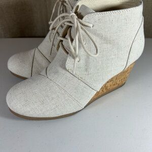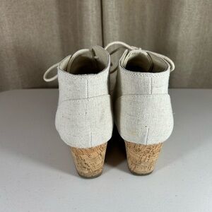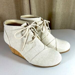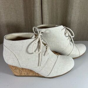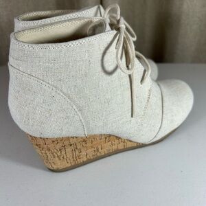 Maurice’s beige Linen look cork wedge heel booties size 8 gorgeous shoes great condition