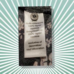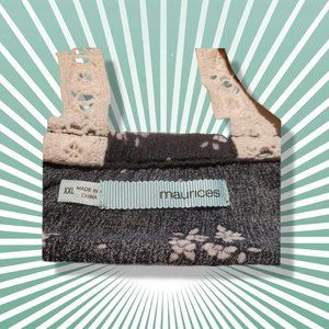 Black, white, and cream floral tunic from Maurices, size 2X. Open back, made in China of 100% rayon.