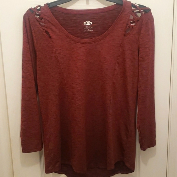 Size small- In Motion long sleeved blouse. With cut outs in the shoulder area.