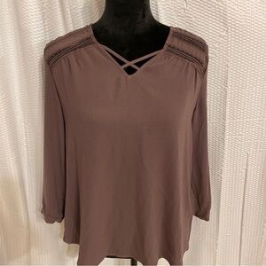 Maurices brown & lace 3/4 sleeve blouse size Medium NWT.