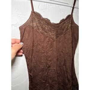 Maurices brown lace trim babydoll crinkle y2k cami womens small fairy grunge