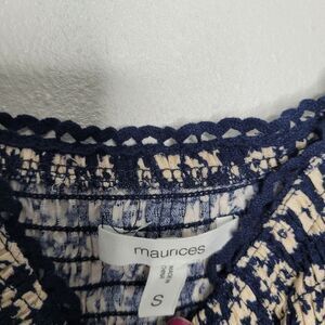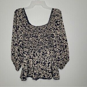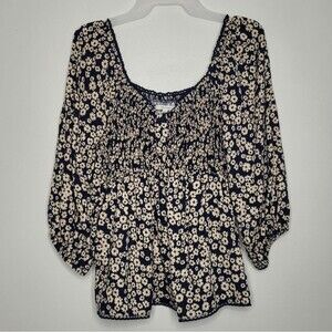 Maurices dark blue cream floral smocked boho cottage cute top size small