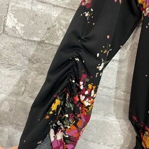 elbow length sleeves with cinching at the side
