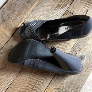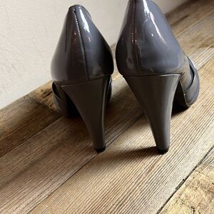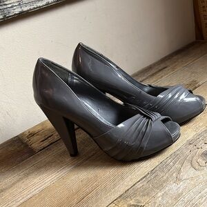 Maurices gray diagonal line peep toe high heels. Size 7.5. EUC.
