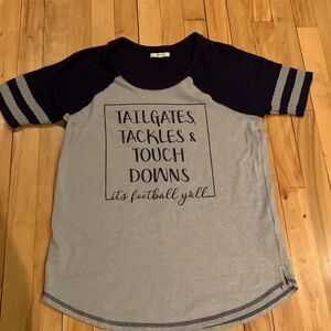 Maurices heather gray, navy waffle short sleeve football theme graphic tee shirt. Small. Soft cotton/polyester/ rayon blend. Medium Excellent condition. Nonsmoking home.