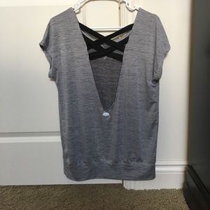 Grey workout short sleeve top, worn no more than 3 times and is like brand new, in perfect condition. Loose fitting with strapping back