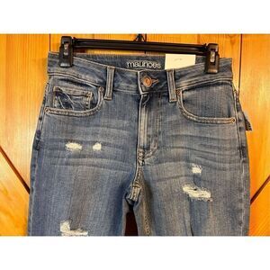 Maurices boyfriend crop jeans size 0 Nwt distressed stretchy raw hem measurements 26” waist 26” inseam 8.5” rise (4674)