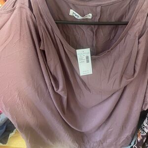 3 Brand new with tags Maurice’s shirts and 2 pair of crops. All size large. Also a cowl Neck sweater
