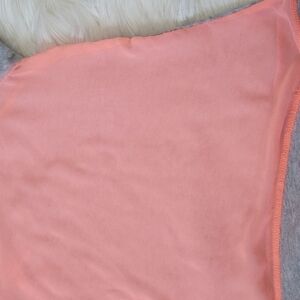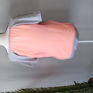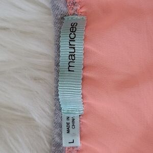 Maurices mixed material heather gray and hot coral colored sheer back tee