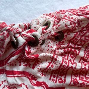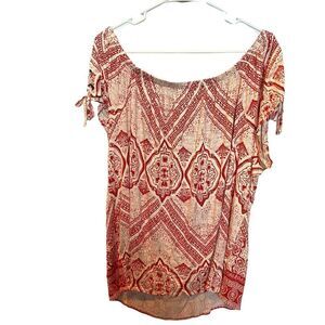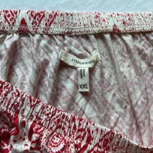 Maurices off shoulder blouse XXL short lace up sleeves red and cream print