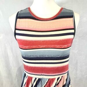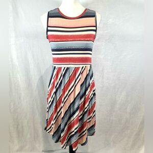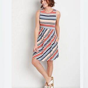 Maurices pink and blue multi stripe empire waist dress with pockets size small