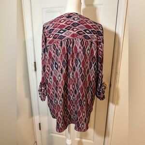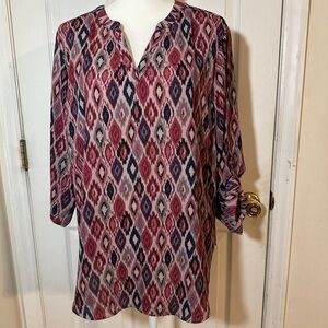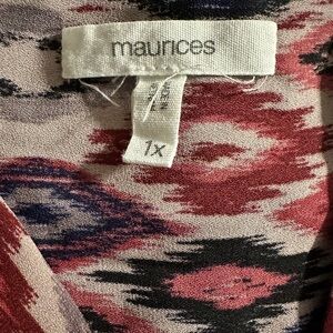 Maurices sheer top in geometric burgundy and navy. Size 1X.