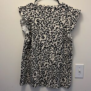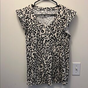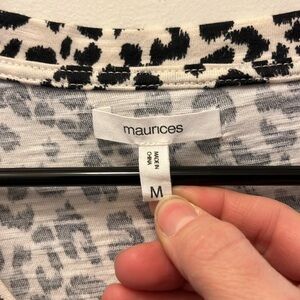 Maurice’s short sleeve back and white leopard print V neck top Size medium