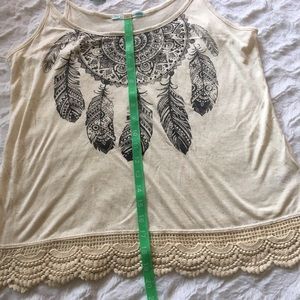 Maurices tank top with beautiful dream catcher designs and has a lace detail at the bottom.See pictures for measurements. If you have any questions pls let me know.🚫No trading sorry 🚫. I'm always open for reasonable offers.Happy Poshing 🛍