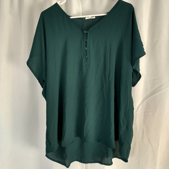 Sheer top, color is more of a dark green Smoke free, pet free home!