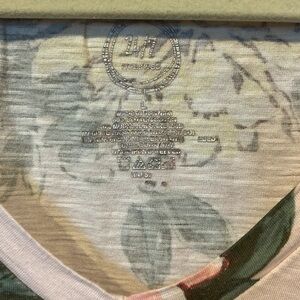 Maurice’s floral tee with cuffed sleeves Slight blush pink color with floral designs Size L