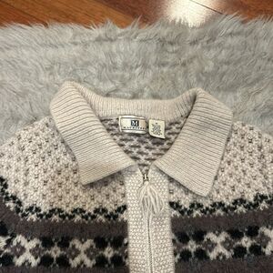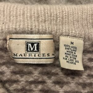 Maurice’s vintage Shetland wool tan, brown and black zip up sweater size medium