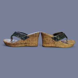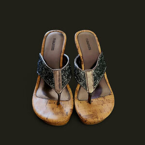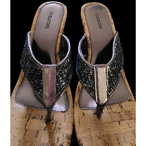Maurices wedge gun metal gray glitter with light bronze leather sandals size 11.