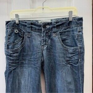 Maurices wide leg flare jeans women's 5 6 with a length measuring 32.5 long tall