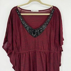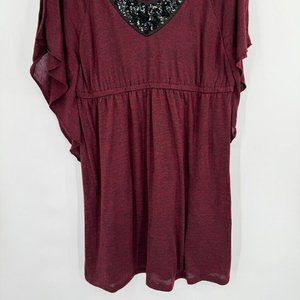 Maurices women's burgundy Sequin v Neck knit Dress Size 1x plus flutter sleeve